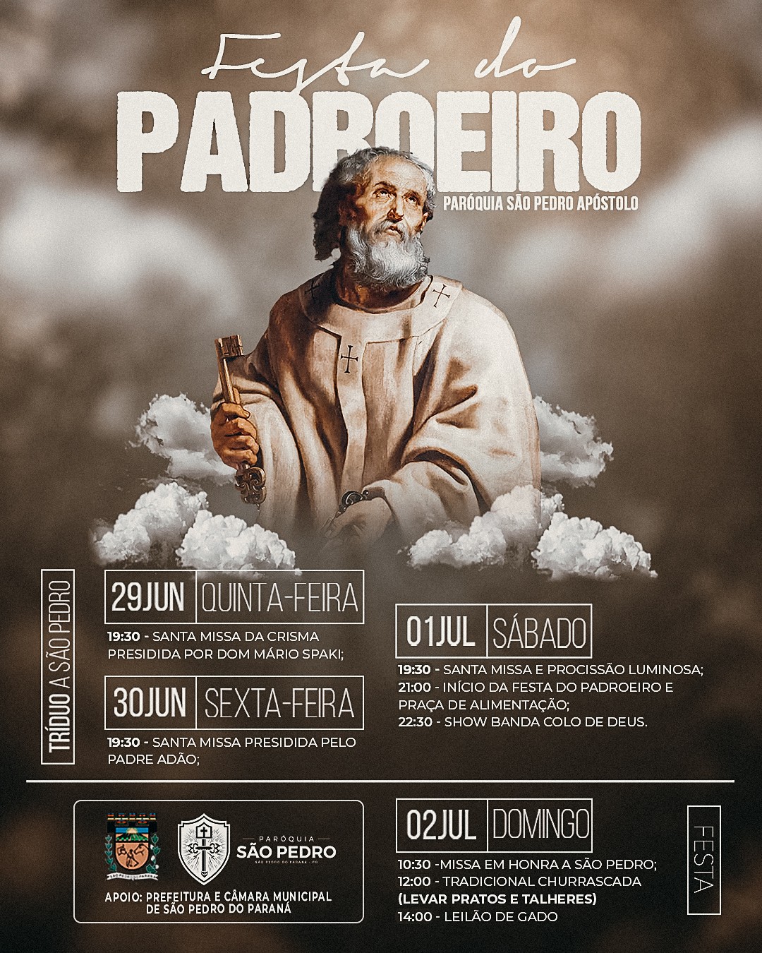 A população de São Pedro do Paraná já está se preparando para a tradicional festa em louvor a São Pedro, padroeiro da cidade, que começa nesta quinta-feira (30/06), com a celebração da santa missa da crisma presidida pelo Bispo Dom Mário Spay, marcada para as 19h30.